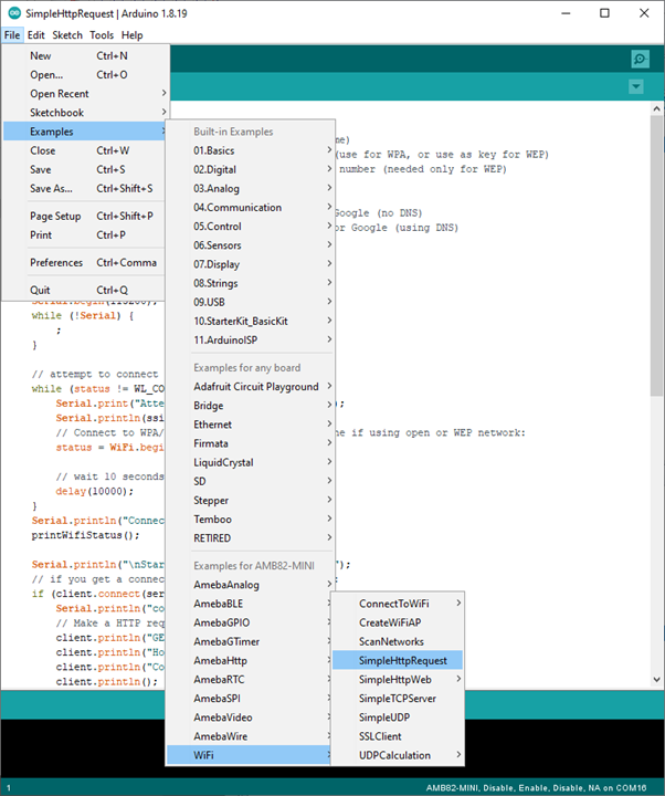 Then open File -> Examples -> WiFi -> SimpleHttpRequest