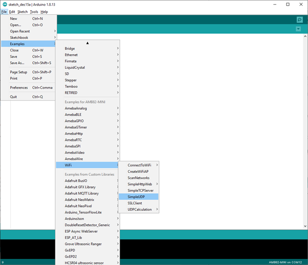 Open the example. File -> Examples -> WiFi -> SimpleUDP